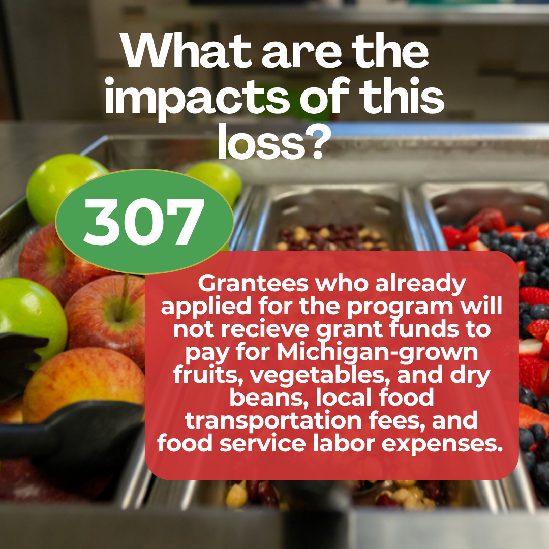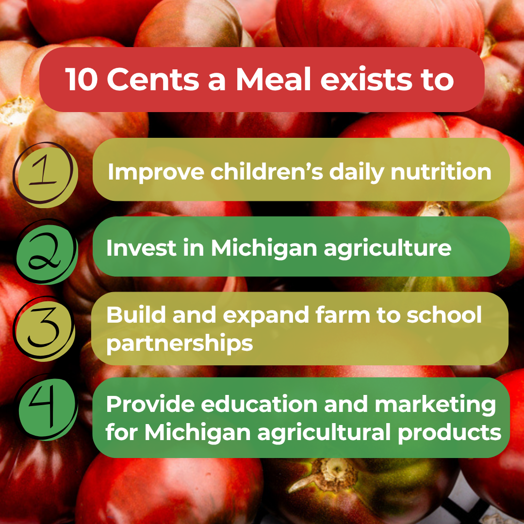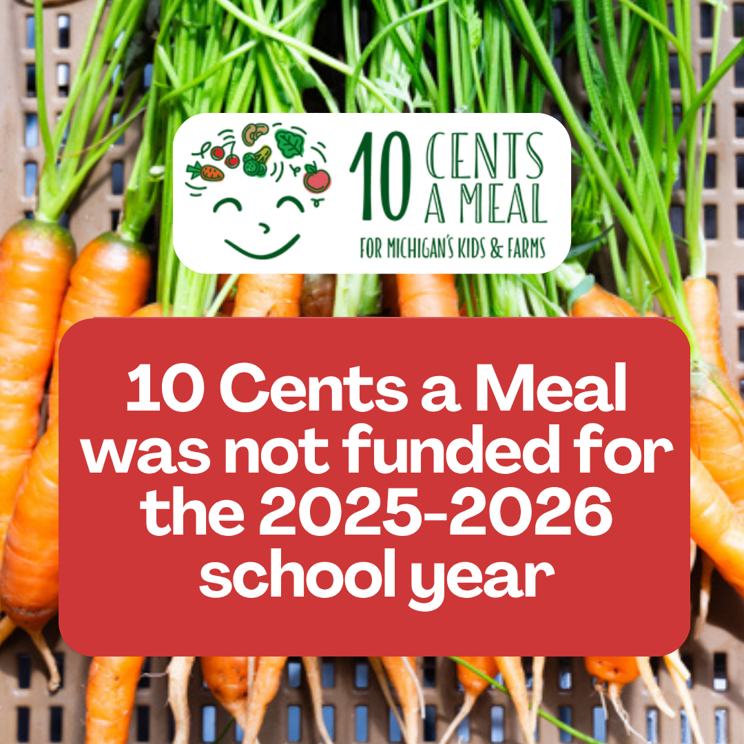 Michigan Farm to School Updates | | Stay informed on the latest news, resources, and events! | | Michigan Farm to School and Early Care Network Informational Meeting Registration Open! | | We invite all involved in Farm to School and Farm to Early Care and Education across Michigan to join a virtual information session on Thursday, November 20 from 1-2pm ET to discuss key findings and recommendations about the development of the Michigan Farm to School and Early Care Network. The goal of this educational event is to build the core foundation for the future Michigan Farm to School and Early Care Network with the voices of engaged participants and providers across the state. After a brief presentation with Q&A, we will ask Farm to School and Farm to ECE stakeholders to share their feedback which will be used to guide our collective next steps. Please, register for the meeting here! | If you can’t attend, share your ideas and perspective now by filling out the community survey linked here: | P.S. Save the date to attend the follow-up Listening & Feedback Follow-Up Session on December 16th at 1pm ET. We will review the results of the community survey and discuss the next steps regarding where we will go as a combined network together! | | Update on 10 Cents a Meal for Michigan Kids and Farms | | | The MSU Center for Regional Food Systems team is disappointed that 10 Cents a Meal for Michigan’s Kids and Farms (10 Cents a Meal) was not included as a line item in the recently released 2026 State School Aid budget for Michigan. Now in its 10th program year, 10 Cents a Meal recently hit a milestone of over 300 program applicants from school districts and providers across the state for the 2025-2026 school year — more than any other year — who desire to purchase fruit, vegetables, and dry beans from Michigan producers to serve to Michigan children. The impacts of this loss are huge for the Michigan communities who have relied on the program to help provide quality, Michigan-grown fruits, vegetables, and dry beans for children's meals and snacks in school, community, and early care and education settings.