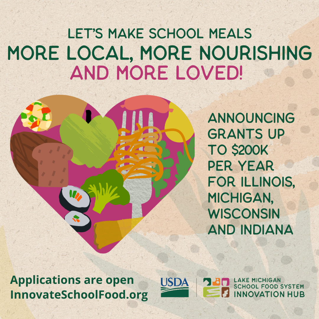 Save the date for February 19 to 22 in Phoenix, Arizona when over 700 school garden educators will gather for four days of peer-to-peer learning, networking, and movement building. | | | Resources, Opportunities, and Inspiration: | | Lake Michigan School Food System Innovation Hub Spark and Innovation Collaborative Awards: APPLICATIONS NOW OPEN!